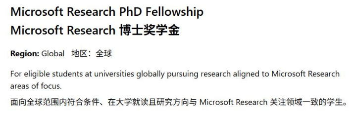 微软同样设立了PhD Fellowship,并通过与多所大学的研究院合作,让博士生能在MSR的科研与学术研究间切换。